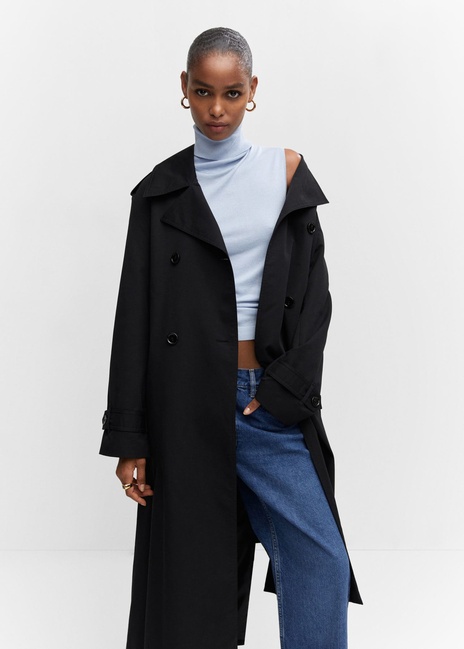Розпродаж жіночого чорного плаща з колекції бренду Mango осінь-зима.