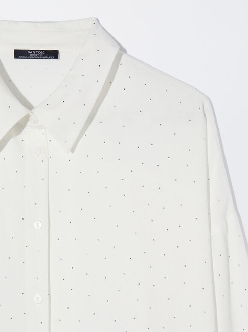 Розпродаж жіночої білої сорочки з колекції бренду Parfois весна-літо 2024.