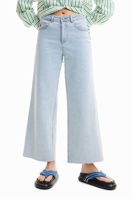 Розпродаж жіночих блакитних джинсів кюлотів з кишенями виконаних у стилі Denim з колекції преміум бренду Desigual весна-літо 2024.