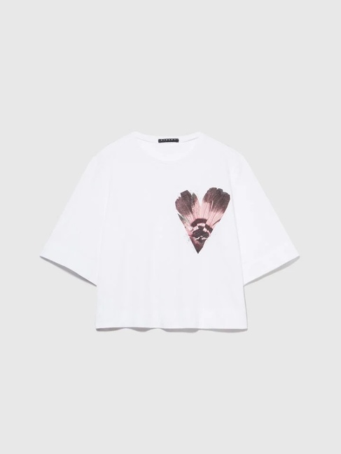 Розпродаж жіночої білої футболки з колекції бренду Sisley весна-літо 2024.