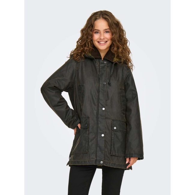 Розпродаж жіночої коричневої прямої куртки з капюшоном виконаної у стилі Casual з колекції бренду Only осінь-зима 2024.