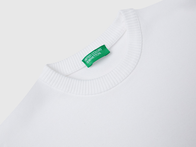 Розпродаж білого прямого светра з круглим вирізом для хлопчиків виконаний у стилі Casual з колекції бренду Benetton весна-літо 2025.