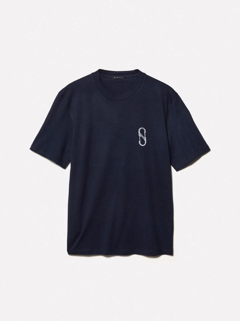Розпродаж чоловічої синьої прямої футболки з круглим вирізом виконаної у стилі Casual з колекції бренду Sisley весна-літо 2025.