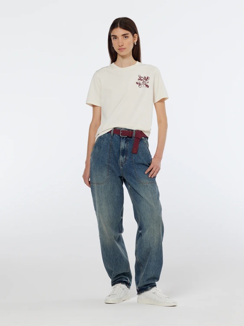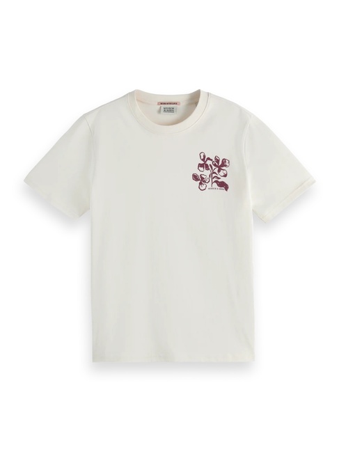 Розпродаж жіночої бежевої прямої футболки з круглим вирізом виконаної у стилі Casual з колекції преміум бренду SCOTCH & SODA весна-літо 2025.
