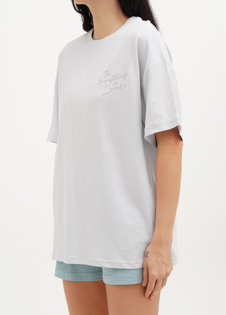 Розпродаж жіночої синьої оверсайз футболки з круглим вирізом виконаної у стилі Casual з колекції бренду EQUILIBRI весна-літо 2025.
