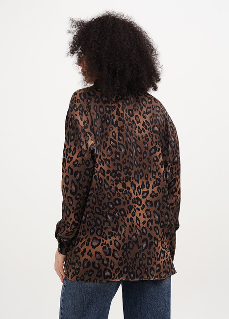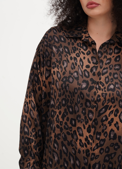 Розпродаж жіночої коричневої леопардової прямої сорочки з гудзиками виконаної у стилі Casual з колекції бренду EQUILIBRI весна-літо 2025.