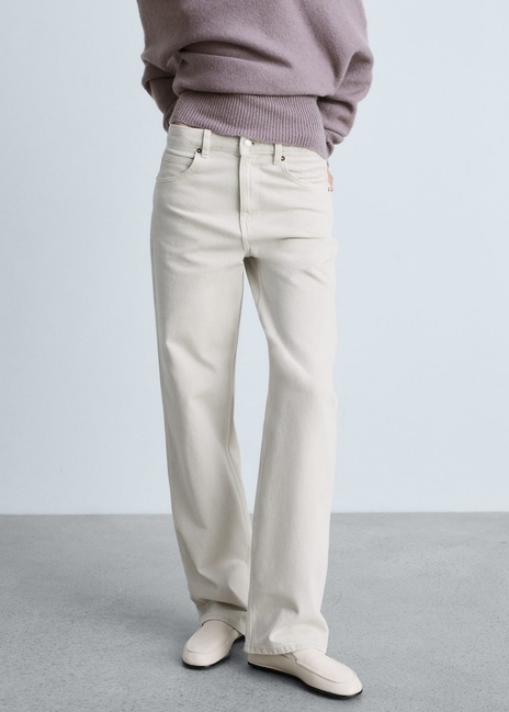 Розпродаж жіночих бежевих прямих джинсів середньої посадки виконаних у стилі Denim з колекції бренду Mango весна-літо 2025.