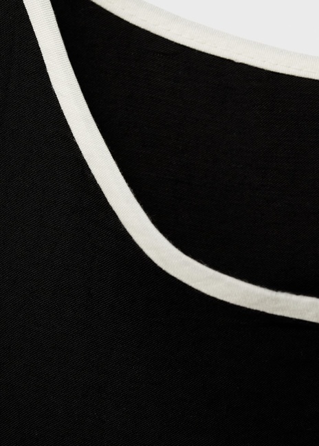 Розпродаж жіночої чорної кльошу сукні з круглим вирізом та широкими брителями виконаної у стилі Casual з колекції бренду Mango весна-літо 2025.