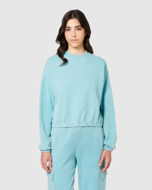 Розпродаж жіночого бірюзового прямого світшота з круглим вирізом виконаний у стилі Casual з колекції бренду Benetton весна-літо 2025.