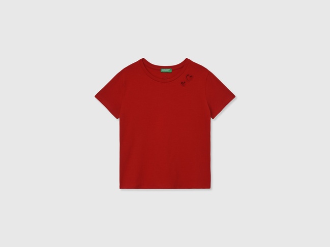 Розпродаж червоної прямої футболки з круглим вирізом для дівчаток виконаної у стилі Casual з колекції бренду Benetton весна-літо 2025.