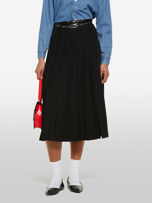 Розпродаж жіночої чорної плісе спiдниці з високою посадкою виконаної у стилях Casual та Classic з колекції бренду Sisley весна-літо 2025.