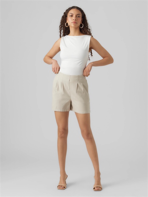 Розпродаж жіночих бежевих прямих шортів з високою посадкою виконаних у стилі Casual з колекції бренду Vero Moda весна-літо 2025.