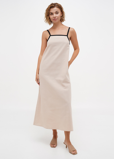 Розпродаж жіночого бежевого сарафана а-силует з тонкими брителями виконаний у стилі Casual з колекції бренду EQUILIBRI весна-літо 2025.