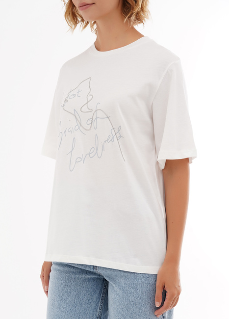 Розпродаж жіночої білої прямої футболки з круглим вирізом виконаної у стилі Casual з колекції бренду EQUILIBRI весна-літо 2025.