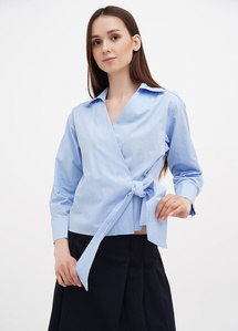 Розпродаж жіночої синьої джинсової та оверсайз сорочки з гудзиками виконаної у стилі Denim з колекції бренду Mango весна-літо 2025.