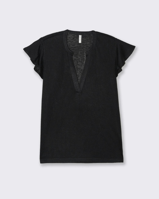 Розпродаж жіночої чорної прямої футболки з v-вирізом виконаної у стилі Casual з колекції бренду Piazza Italia весна-літо 2025.