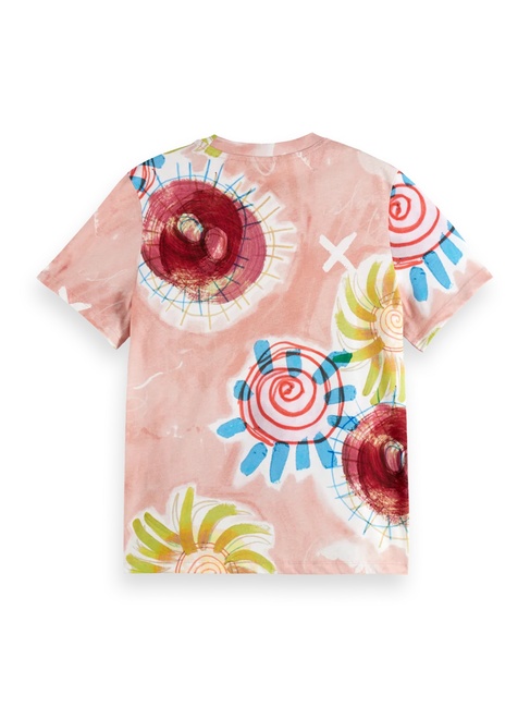 Розпродаж жіночої рожевої прямої футболки з круглим вирізом виконаної у стилі Casual з колекції преміум бренду SCOTCH & SODA весна-літо 2025.