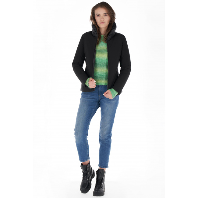 Распродажа женской черной приталенной куртки с молнией но без капюшона из коллекции бренда Lee Cooper осень-зима 2022.