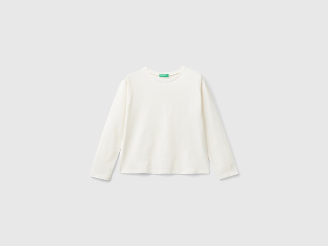 Распродажа бежевого прямого лонгслива с круглым вырезом для девочек выполнен в стиле Casual из коллекции бренда Benetton осень-зима 2024.