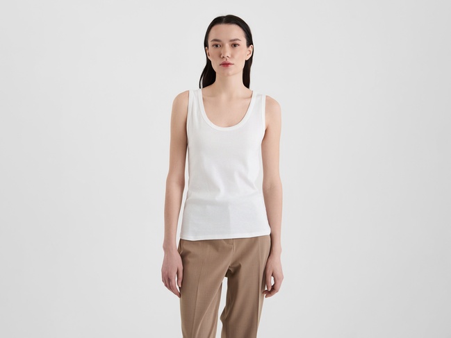 Распродажа женской белой прямой майки с круглым вырезом и широкими брителями выполненной в стиле Casual из коллекции бренда Benetton весна-лето 2025.