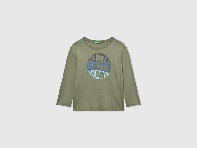 Распродажа зеленого прямого лонгслива с круглым вырезом для мальчиков выполнен в стиле Casual из коллекции бренда Benetton весна-лето 2025.