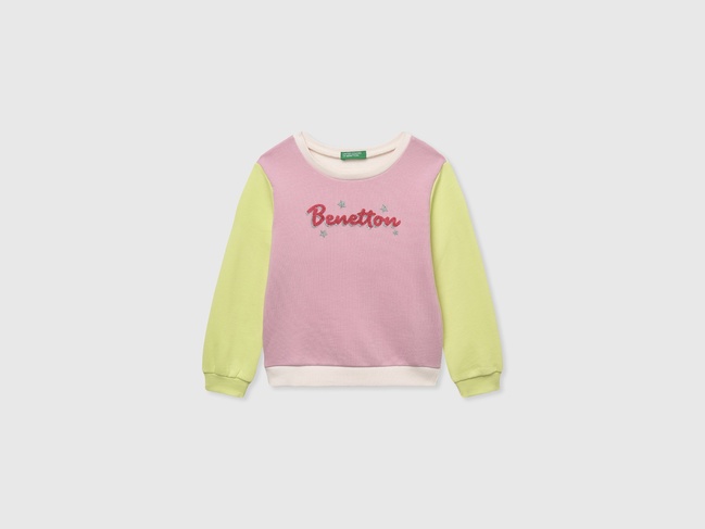 Распродажа зелено-розового прямого свитшота с круглым вырезом для девочек выполнен в стиле Casual из коллекции бренда Benetton весна-лето 2025.