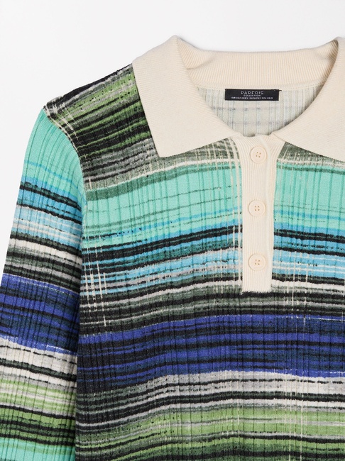 Распродажа женского разноцветного прямого свитера с v-вырезом и пуговицами выполнен в стиле Casual из коллекции бренда Parfois весна-лето 2025.