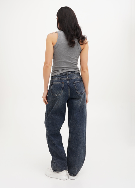 Распродажа женских синих джинсов балонов с высокой посадкой выполненных в стиле Denim из коллекции бренда EQUILIBRI весна-лето 2025.