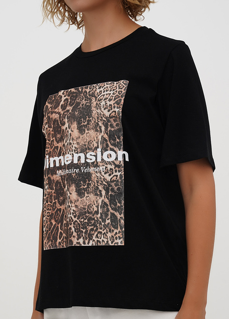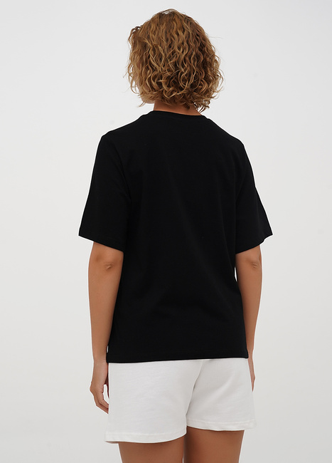 Распродажа женской черной прямой футболки с круглым вырезом выполненной в стиле Casual из коллекции бренда EQUILIBRI весна-лето 2025.