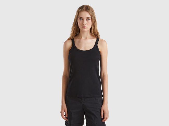 Распродажа женской черной прямой майки с круглым вырезом и широкими брителями выполненной в стиле Casual из коллекции бренда Benetton осень-зима 2024.