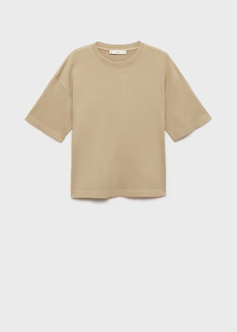Распродажа женской хаки оверсайз футболки с круглым вырезом выполненной в стиле Casual из коллекции бренда Mango весна-лето 2025.