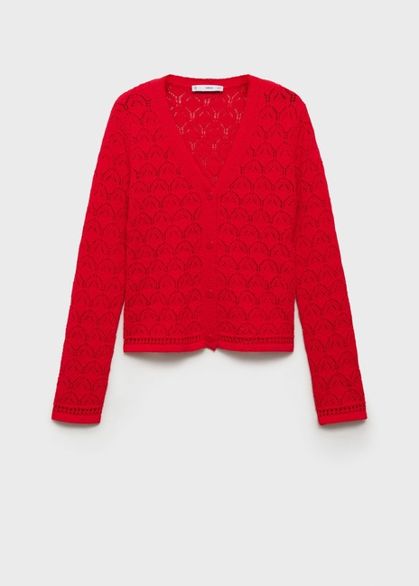 Распродажа женского красного прямого кардигана с v-вырезом и пуговицами выполнен в стиле Casual из коллекции бренда Mango весна-лето 2025.
