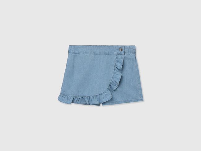 Распродажа синих прямых и с юбкой шорт для девочек выполненных в стиле Casual из коллекции бренда Benetton весна-лето 2025.