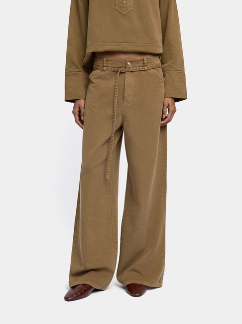 Распродажа женских коричневых wide штанов средней посадки выполненных в стиле Denim из коллекции бренда Parfois осень-зима 2025.
